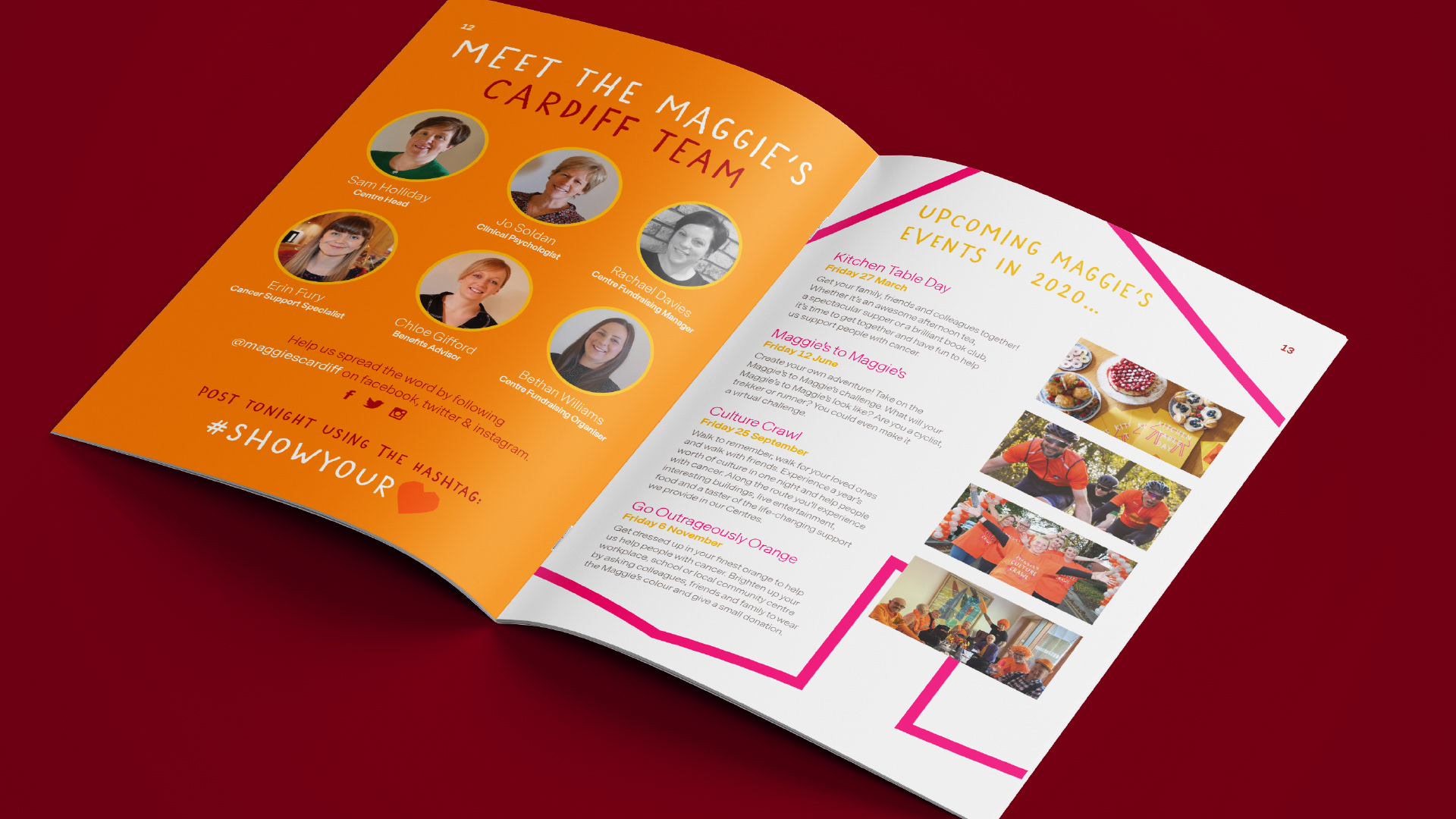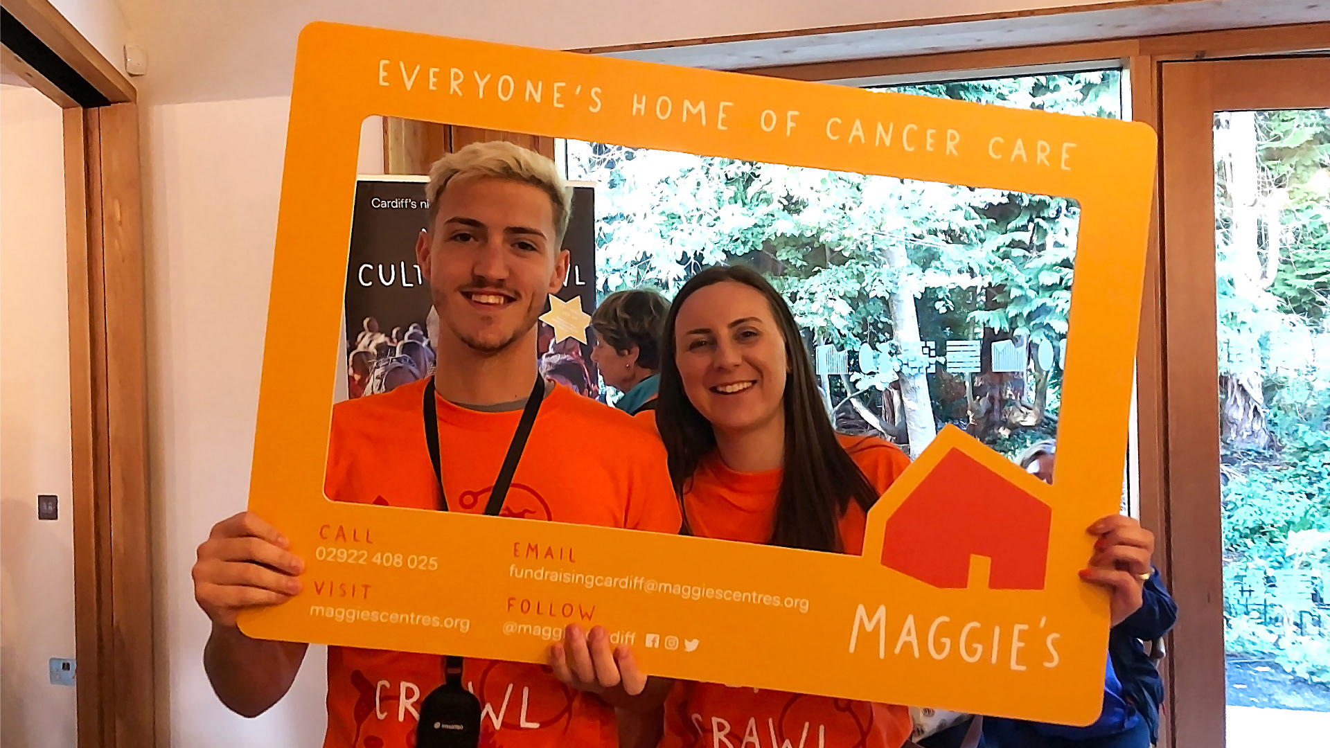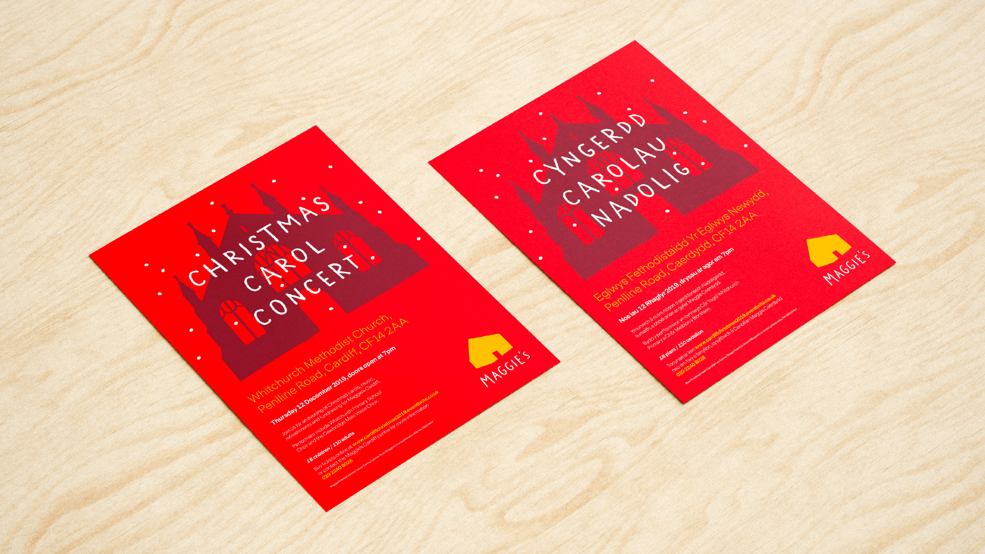 Bilingual flyer, selfie frame and brochure design for the cancer care charity Maggie's.